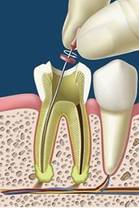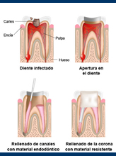 Es el tratamiento que consiste en la extracción de la pulpa del diente, un tejido pequeño en forma de hebra, que se encuentra en el centro del conducto del diente. Una vez que la pulpa muerta, se enferma o es dañada, se extrae; el espacio que queda se limpia, se vuelve a dar forma y se rellena. Este procedimiento sella el conducto radicular. Años atrás, los dientes con pulpas dañadas o enfermas se extraían. En la actualidad, el tratamiento de conducto salva dientes que de otro modo se hubieran perdido